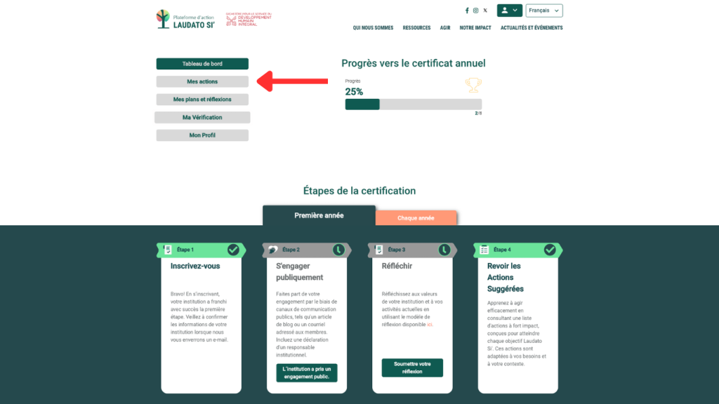 Une fois votre action accomplie, retournez sur la plateforme, dans “Mes Actions.”